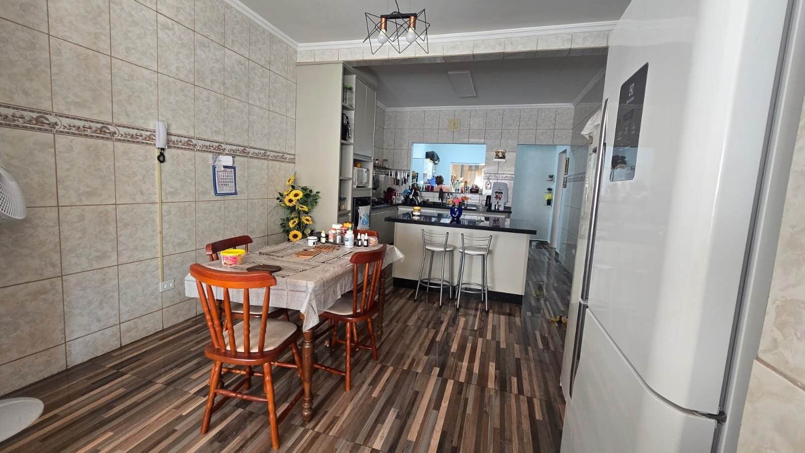 Cozinha funcional e espaçosa, ideal para suas criações culinárias e uma área gourmet fantastica com um lavabo.